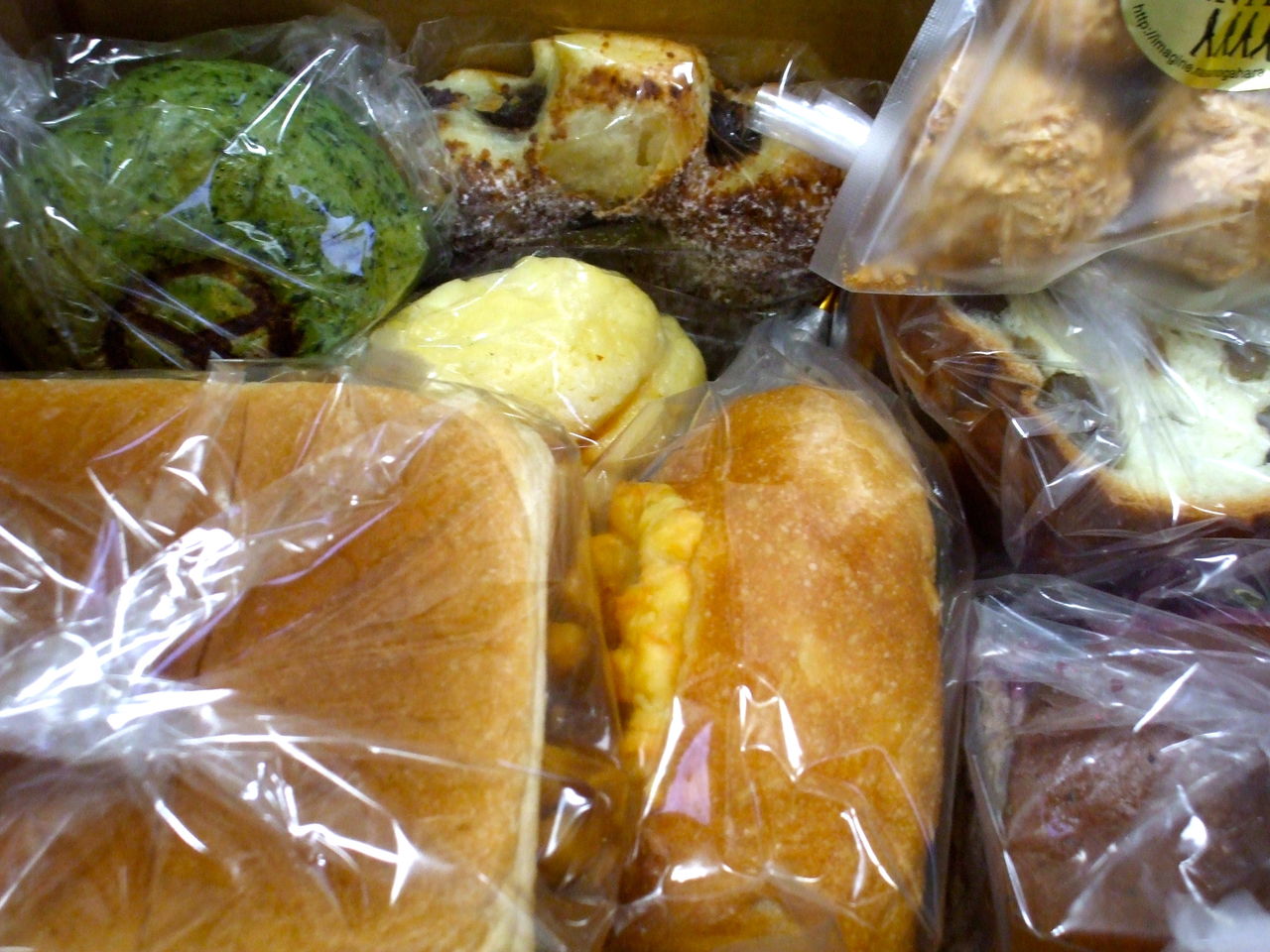 そして箱のガムテープをはがしフタを開けると、箱いっぱいに詰まったパンが魅力的(笑 )