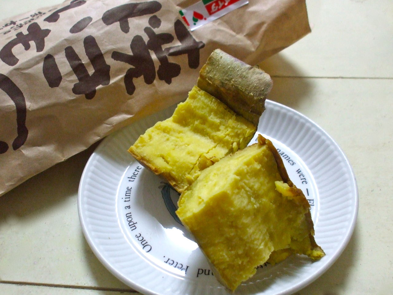仕事帰りに焼きいもを買ったら、帰宅して、まず半分をホクホクで味わう