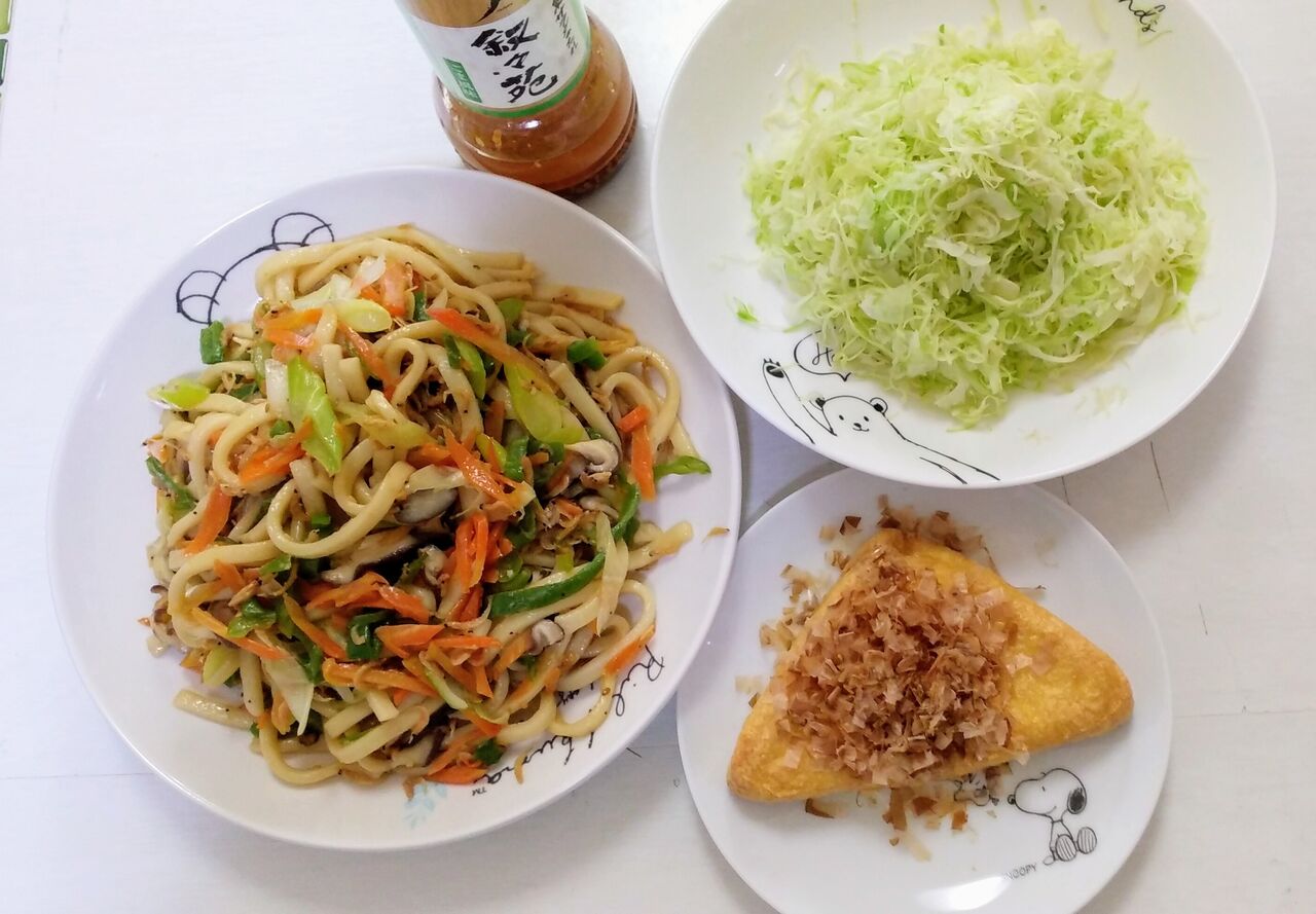 お昼ご飯は焼きうどん。